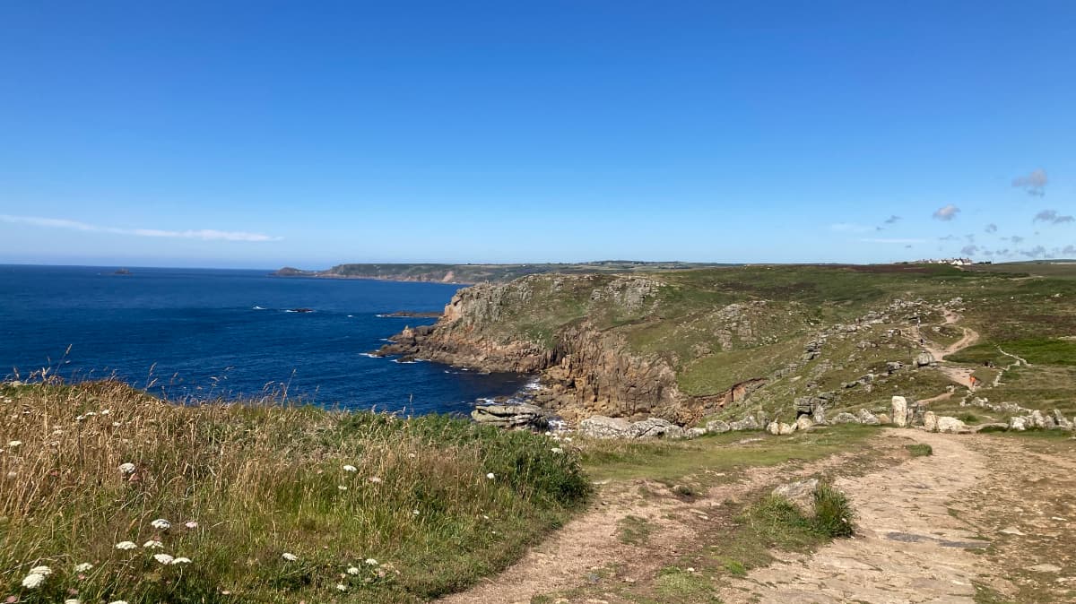 This route takes us along part of the South West Coast Path with this easy access small trail that starts at the Lands End Car Park (TR19 7AA). There are around 20 disabled parking bays here should you need one.