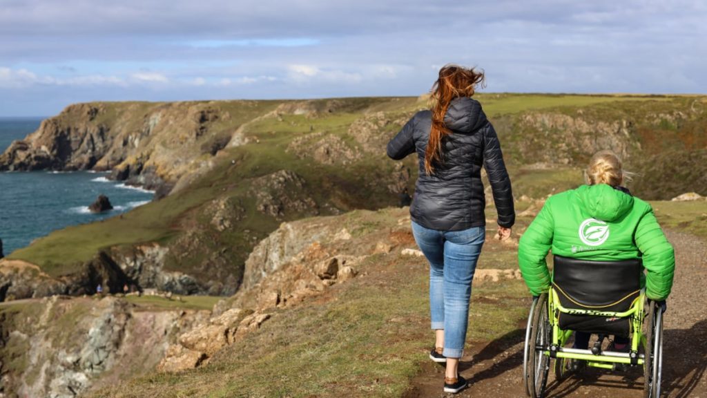 The rugged Cornish coastline, with its high cliffs and steep paths, aren’t always conducive to wheelchair travel – but this walk is an exception and links up two magnificent view points. We’re starting at the YHA at Lizard Point / National Trust car park. We recommend taking some time either before or after the walk to explore the area here around the lighthouse.