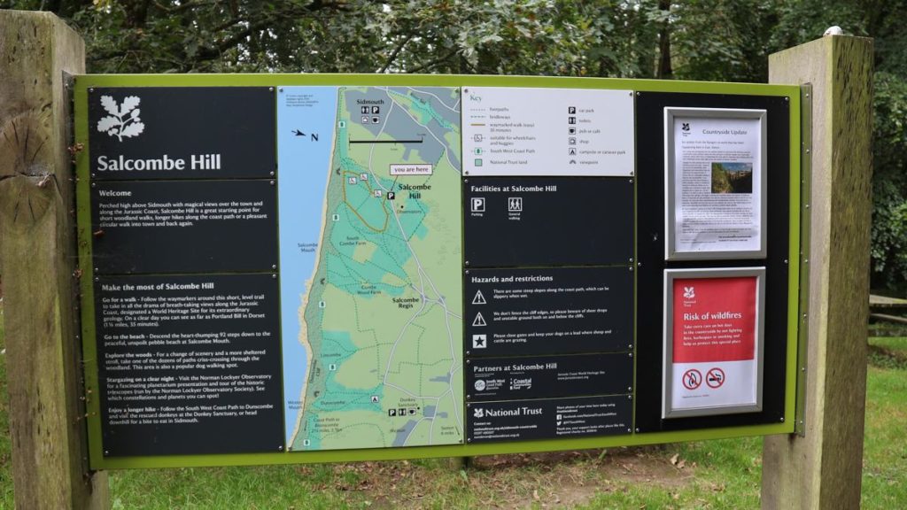 We start in woodland at the National Trust carpark at Salcombe Hill, near Sidmouth – heading southwards to come out on the cliff top with views out across Devon’s Jurassic Coastline.