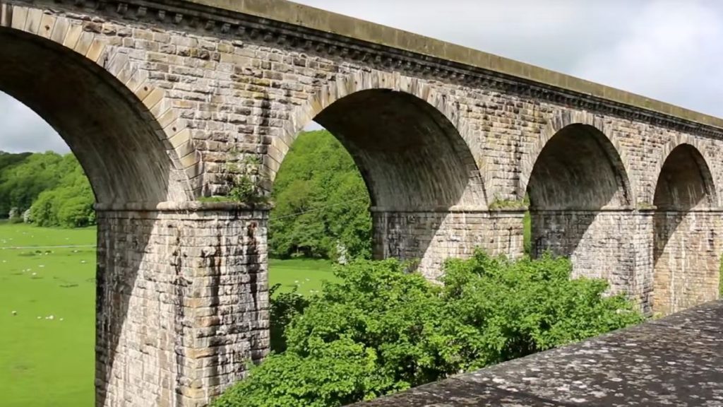The route crosses the world-famous Pontcysyllte Aqueduct, an 18-arched stone and cast iron structure that carries the canal across the River Dee.