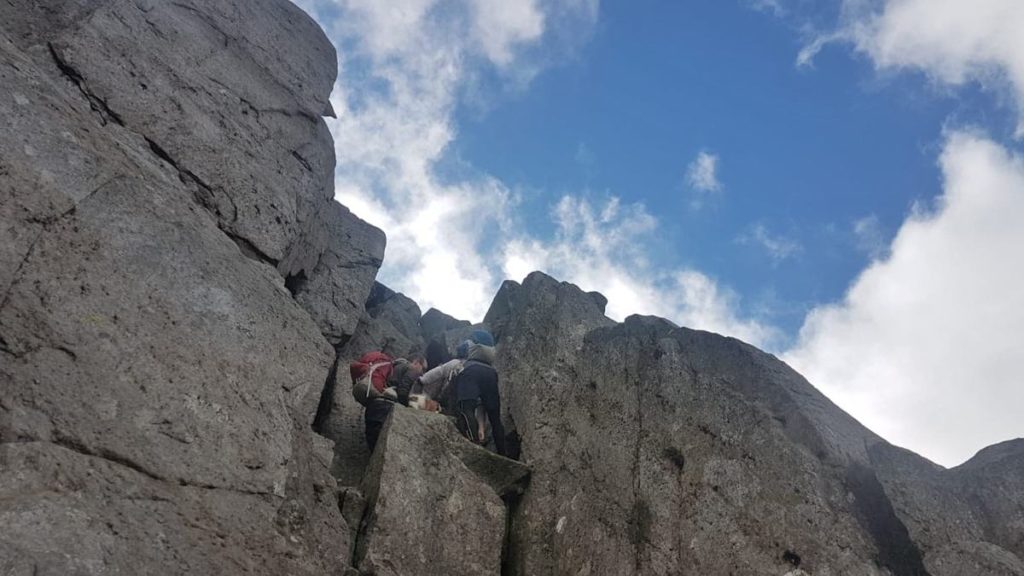 IMPORTANT: This is a tough mountain route that climbs three peaks over 3,000ft and crosses exposed rocky terrain that requires scrambling experience. Be prepared for high winds, heavy rain and low visibility. Plan your route carefully and always carry suitable hill walking gear.