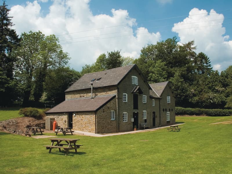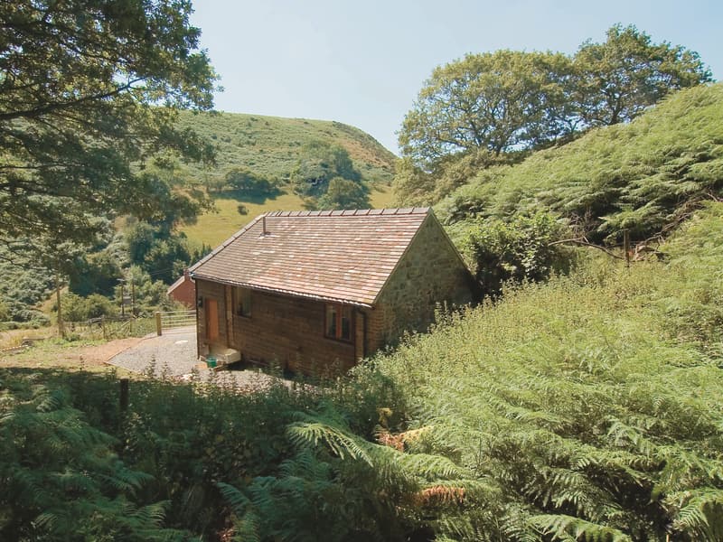 Just before a cattle grid and just after a house on the right, we turn right over a waymarked stile/gate. Our path is now along the edge of a field with a deep streambed on the right, passing well above New House Farm. Go through a gate with ‘Welcome to Caer Caradoc’ board to enter woodland with a stream on the left. We ignore the path on the left and cross the stream and stay with the broad track rising steadily, with the hill straight ahead of us.